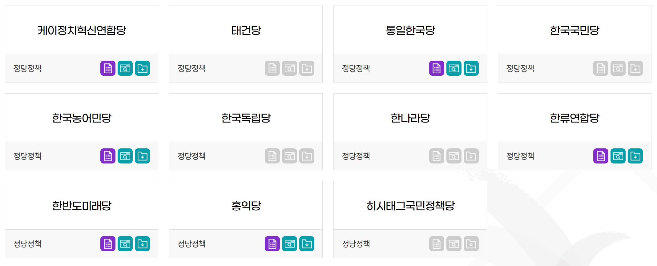 내가 뽑을 국회의원이 어떤 사람인지, 내가 뽑을 정당이 어떤 생각으로 모여있는지 판단하기 위해서는 공약집이나 선거벽보, 방송 연설과 토론회를 보며 판단할 수 있습니다. 그럼 이번에는 각 후보들, 정당들이 어떤 정책, 공약을 내세우고 출마를 했는지 알아보겠습니다.