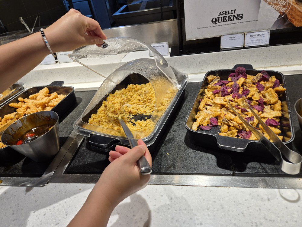 애슐리 치킨은 예전부터 유명했던 만큼 역시나 부드러운 튀김이 맛있었습니다. 살코기도 모두 닭다리 살인 듯 부드러웠습니다. 아이들이 먹을만한 메뉴들도 많고 한식, 중식, 일식, 여기에 지중해식 생선 스테이크 등 정말 가짓수가 다 먹어보지 못할 정도로 많았습니다.