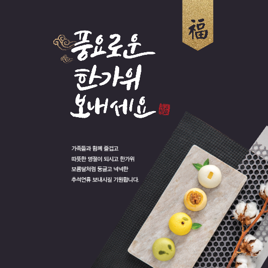 - 모두 풍성하고 흥겨운 명졍 연휴를 맞이하시기를 진심으로 기원합니다.